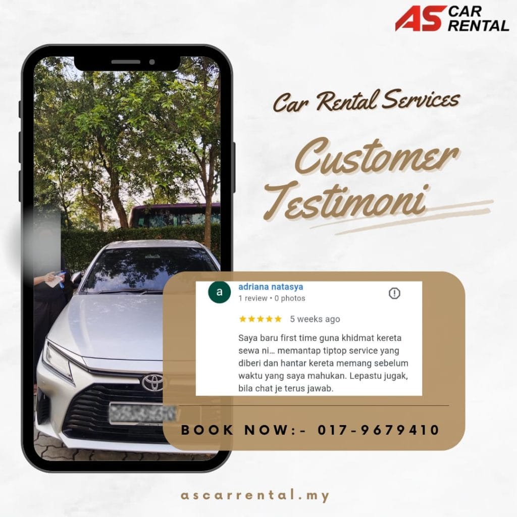 Dan testimoni dari pelanggan kereta sewa kami di fb page rasmi