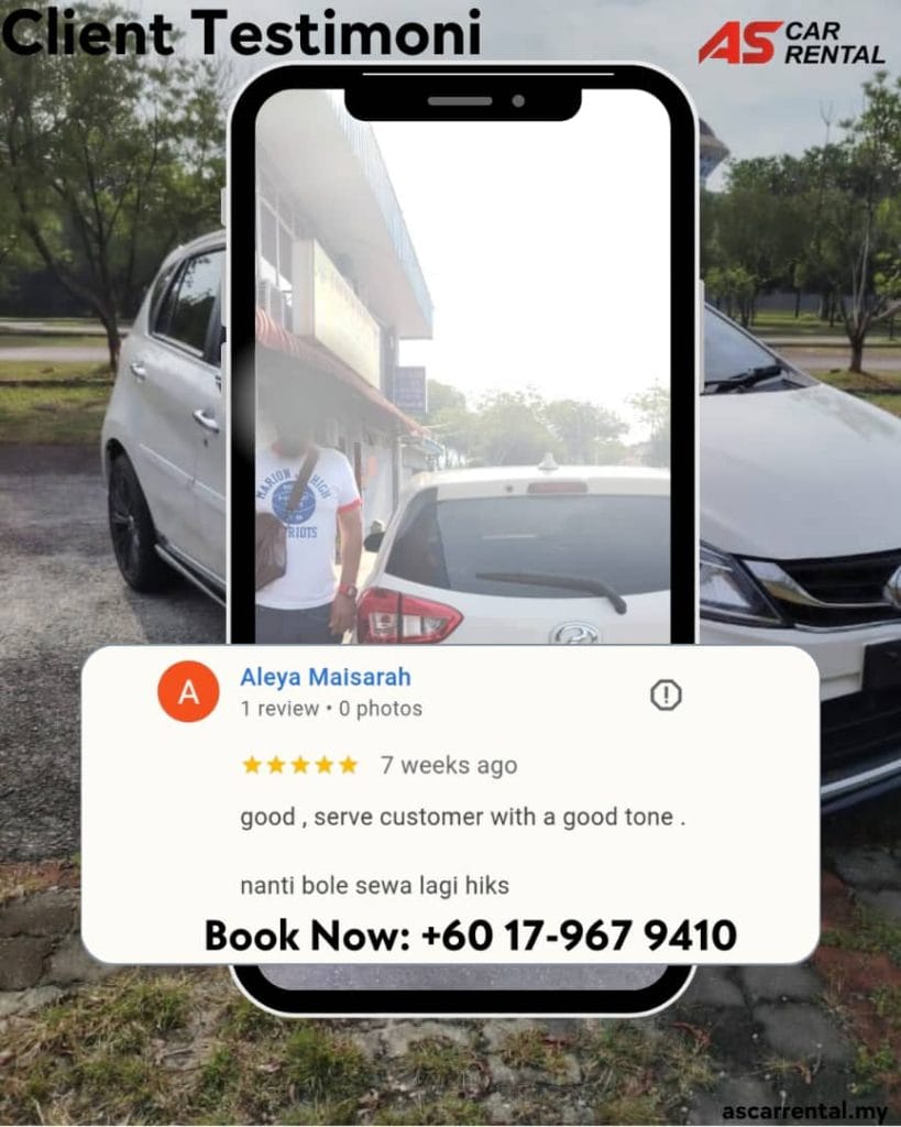 ⭐ “Good, serve customer with a good tone… nanti boleh sewa lagi hiks.” – Aleya