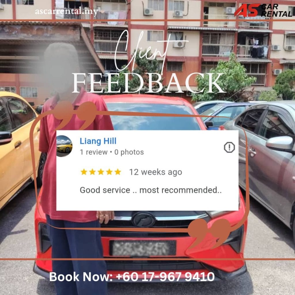 Dan testimoni dari pelanggan kereta sewa kami di fb page rasmi