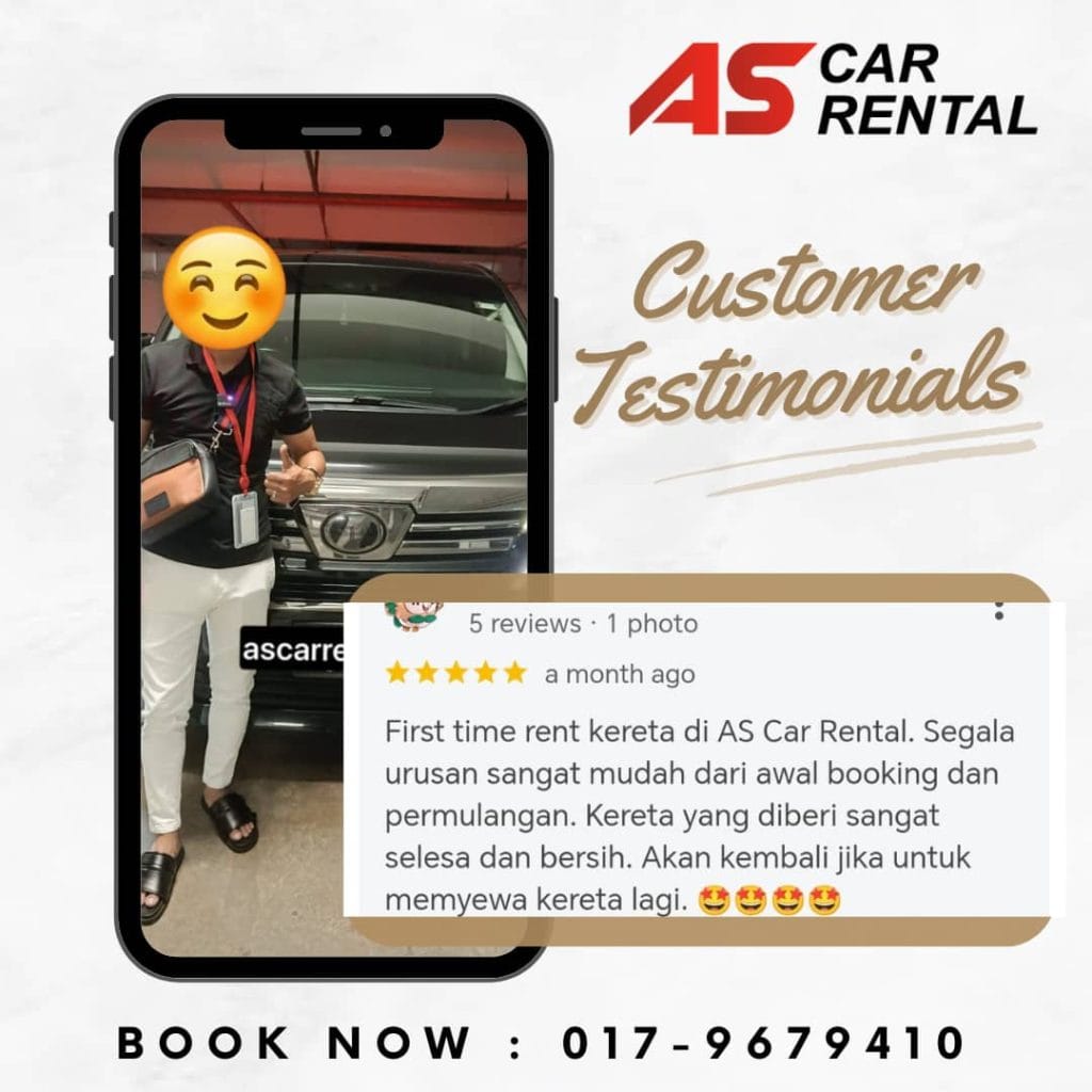 Pelanggan turut menyatakan kesediaan untuk kembali menyewa kereta di AS Car Rental pada masa akan datang.