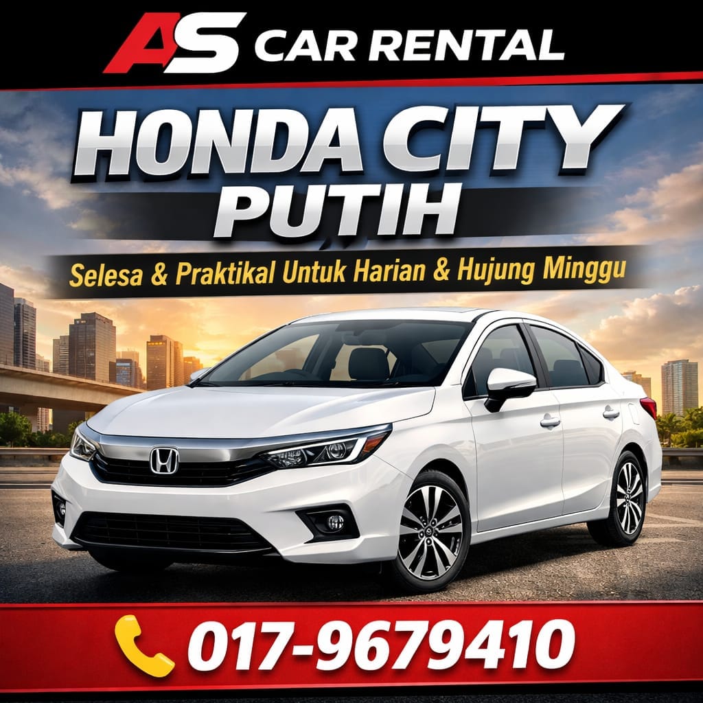 Di AS Car Rental Seri Kembangan, setiap unit Honda City diselenggara dan diperiksa secara berkala bagi memastikan kenderaan berada dalam keadaan bersih, selamat dan sedia digunakan.