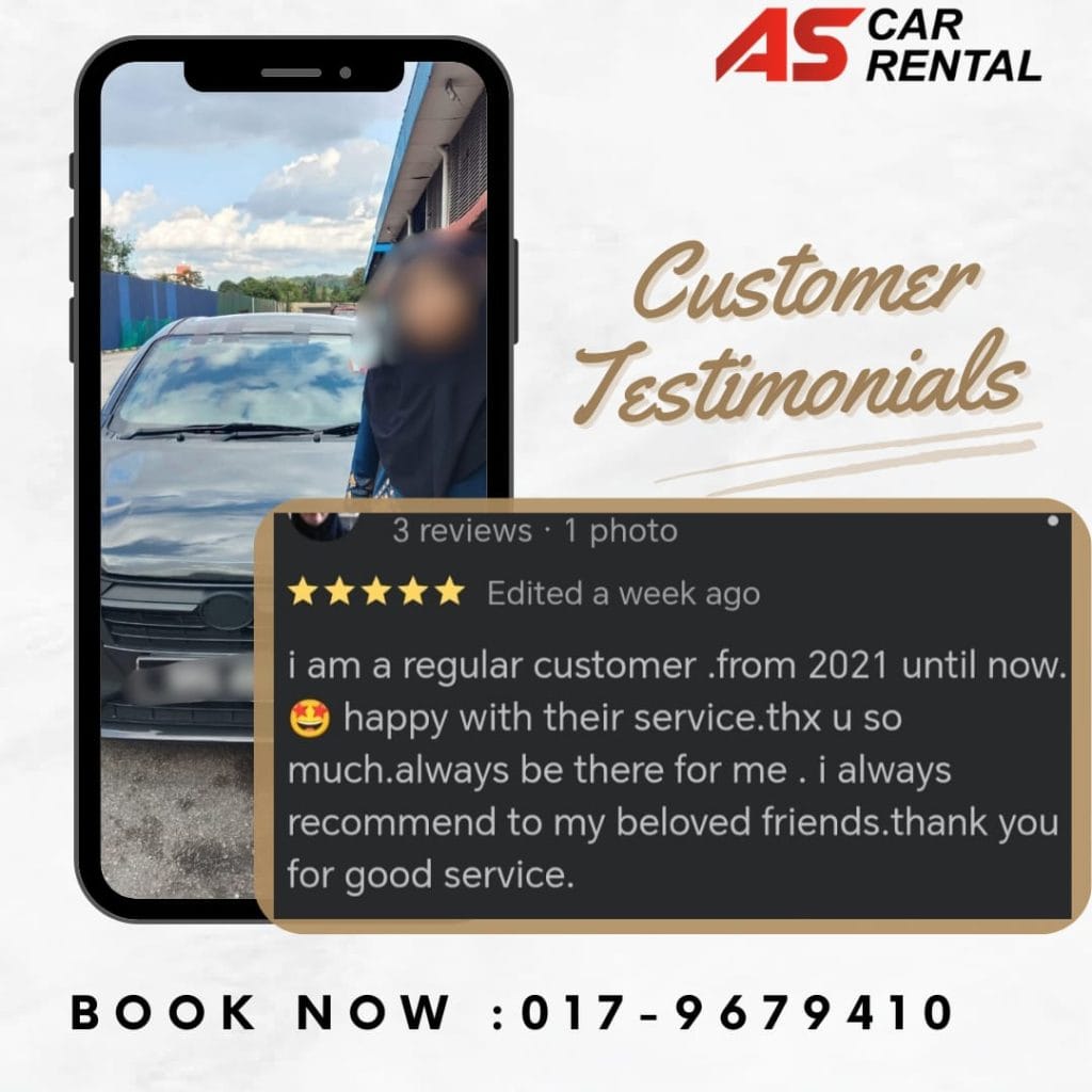 Terima kasih kerana terus memilih AS Car Rental sebagai pilihan utama.