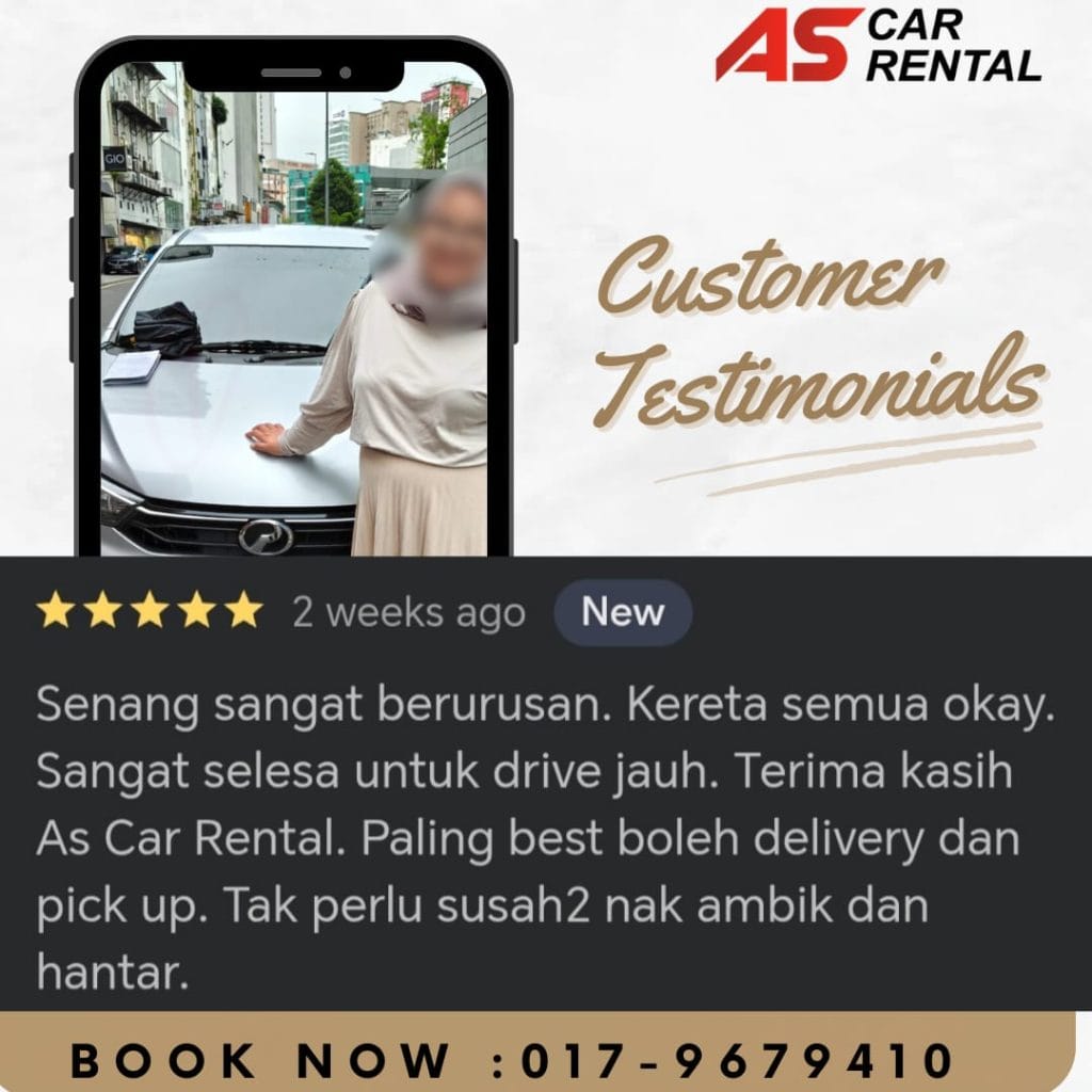 Kami gembira pelanggan berpuas hati dengan urusan sewa kereta bersama AS Car Rental.