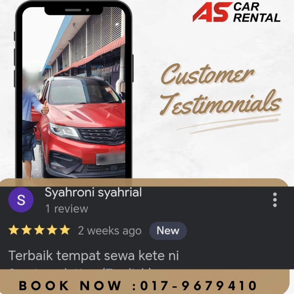 Alhamdulillah, kami sangat hargai maklum balas “Terbaik tempat sewa kete ni”. Kepuasan pelanggan memang jadi keutamaan kami setiap hari.