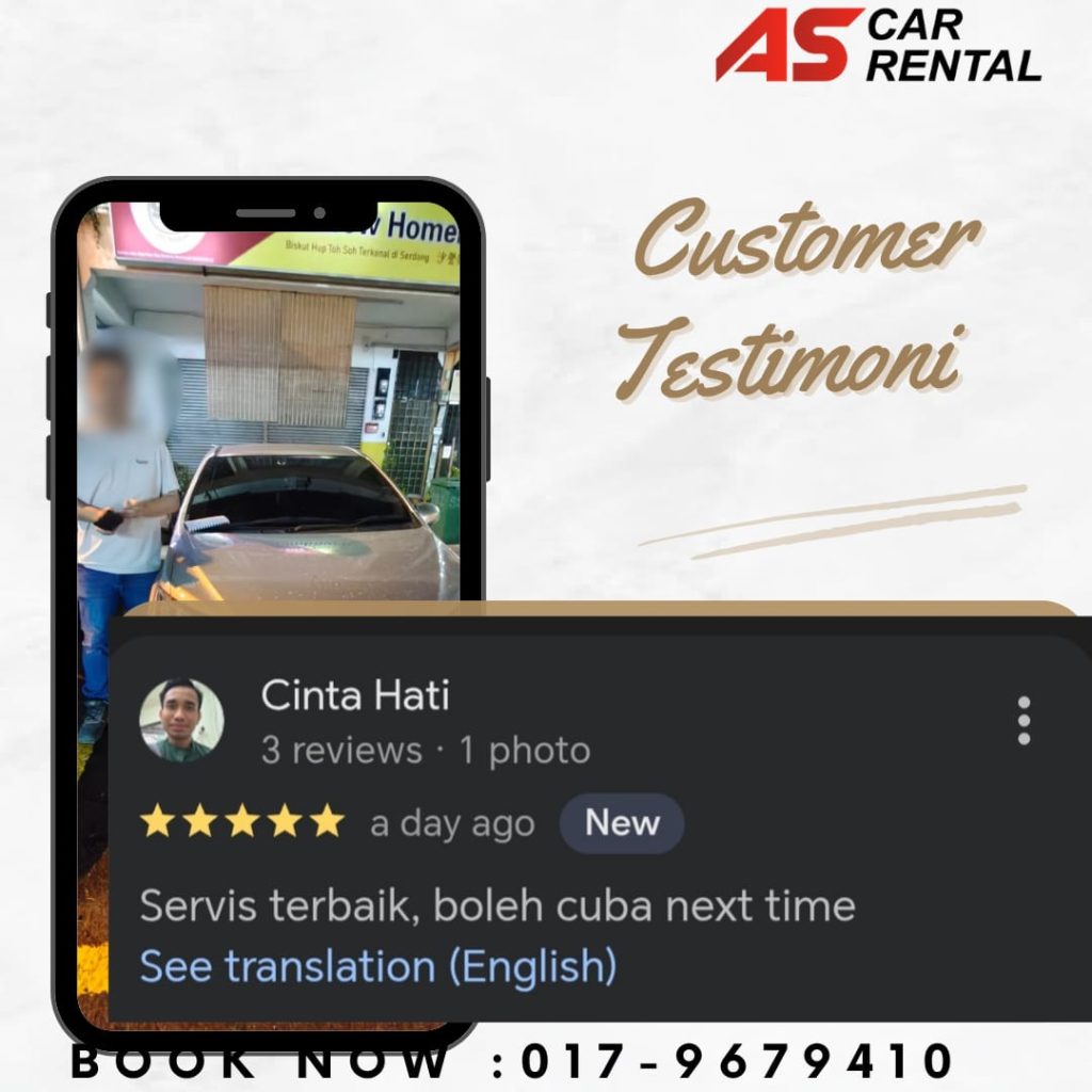⭐⭐⭐⭐⭐ Review Pelanggan AS Car Rental – Servis Memang Terbaik
