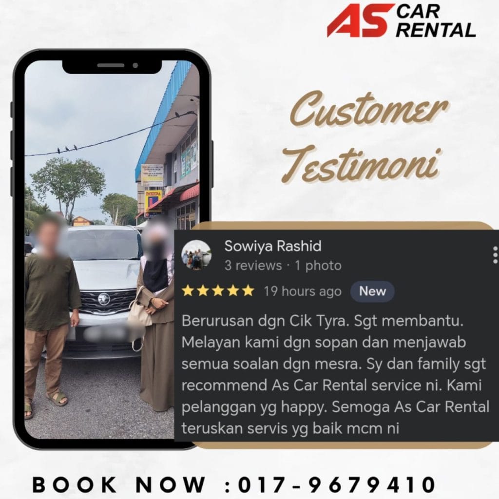 Terima kasih Puan Sowiya Rashid atas kepercayaan kepada AS Car Rental – Seri Kembangan | Seri Serdang | Bangi | Kajang | Putrajaya ❤️